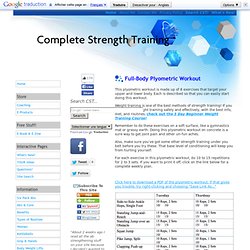 Plyometric workouts pdf Photos of Plyometric Drills supplement. plyo workout pdf Gression of plyometric exercises through increasing exercises intensity. This article introduces three upper body plyometric ... Read Here